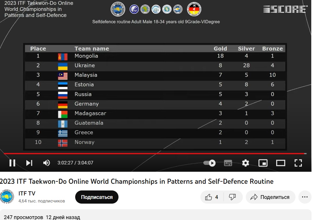 До речі, офіційно Міжнародна федерація таеквон-до ІТФ застосування санкцій про заборону участі у міжнародних спортивних заходах спортсменів рф та рб не підтримала — принаймі, інформації про дискваліфікацію російських та білоруських спортсменів на офіційних джерелах знайти не вдалось.