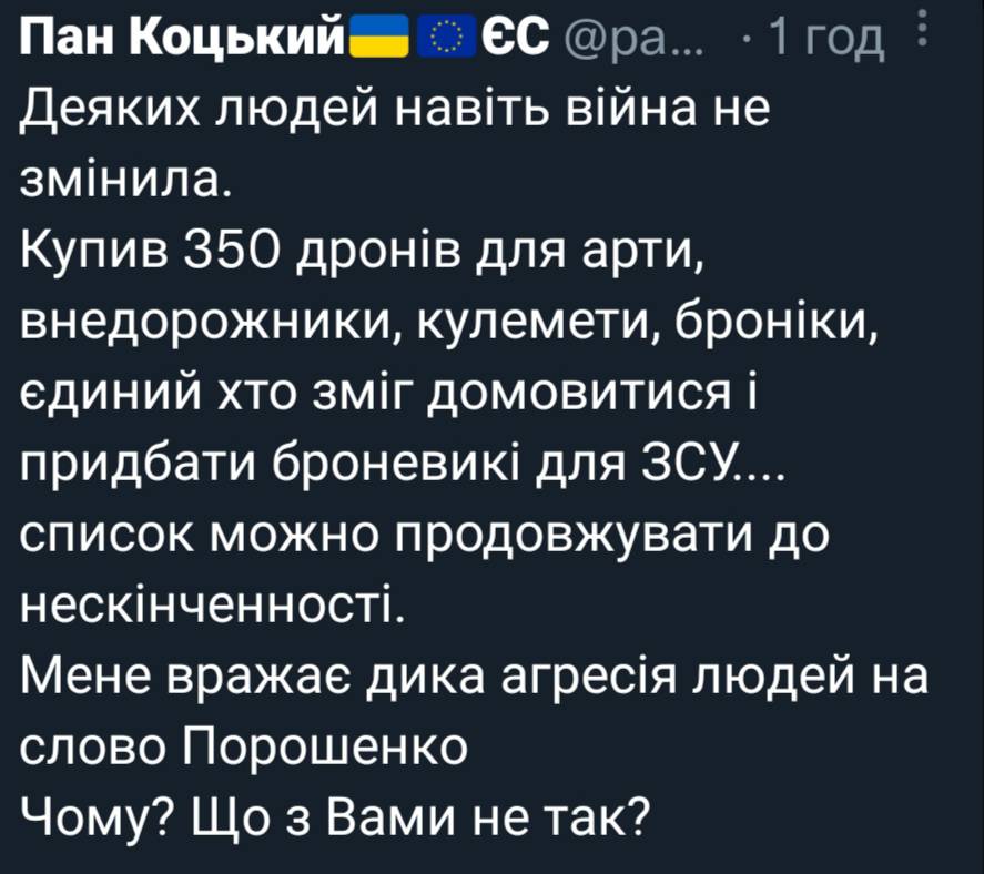 Як тільки дрони від держави почнуть поступати в район Авдіівки, одразу напишу та подякую Верховному головнокомандувачу, все буде об‘єктивно.