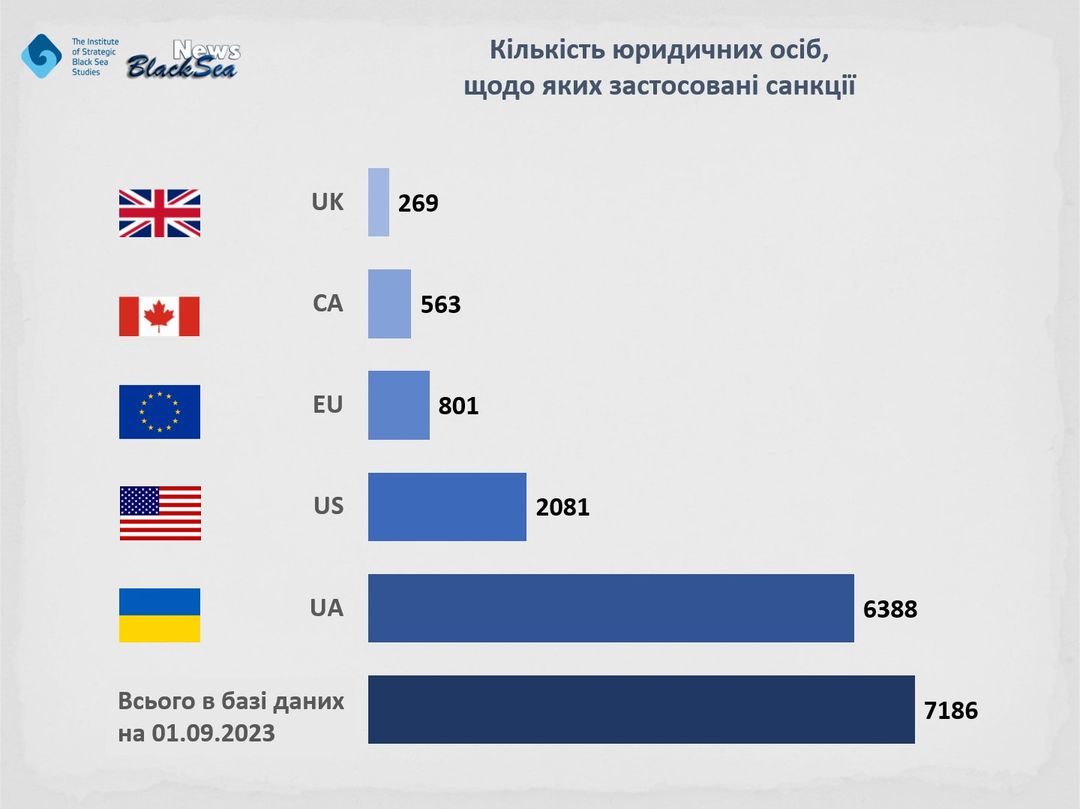 5. Треба негайно синхронізувати санкційні списки щодо юридичних осіб - на діаграмі станом на 01.09.2023 наочно можна побачити, що там величезний фронт роботи. Особливо в ЄС.