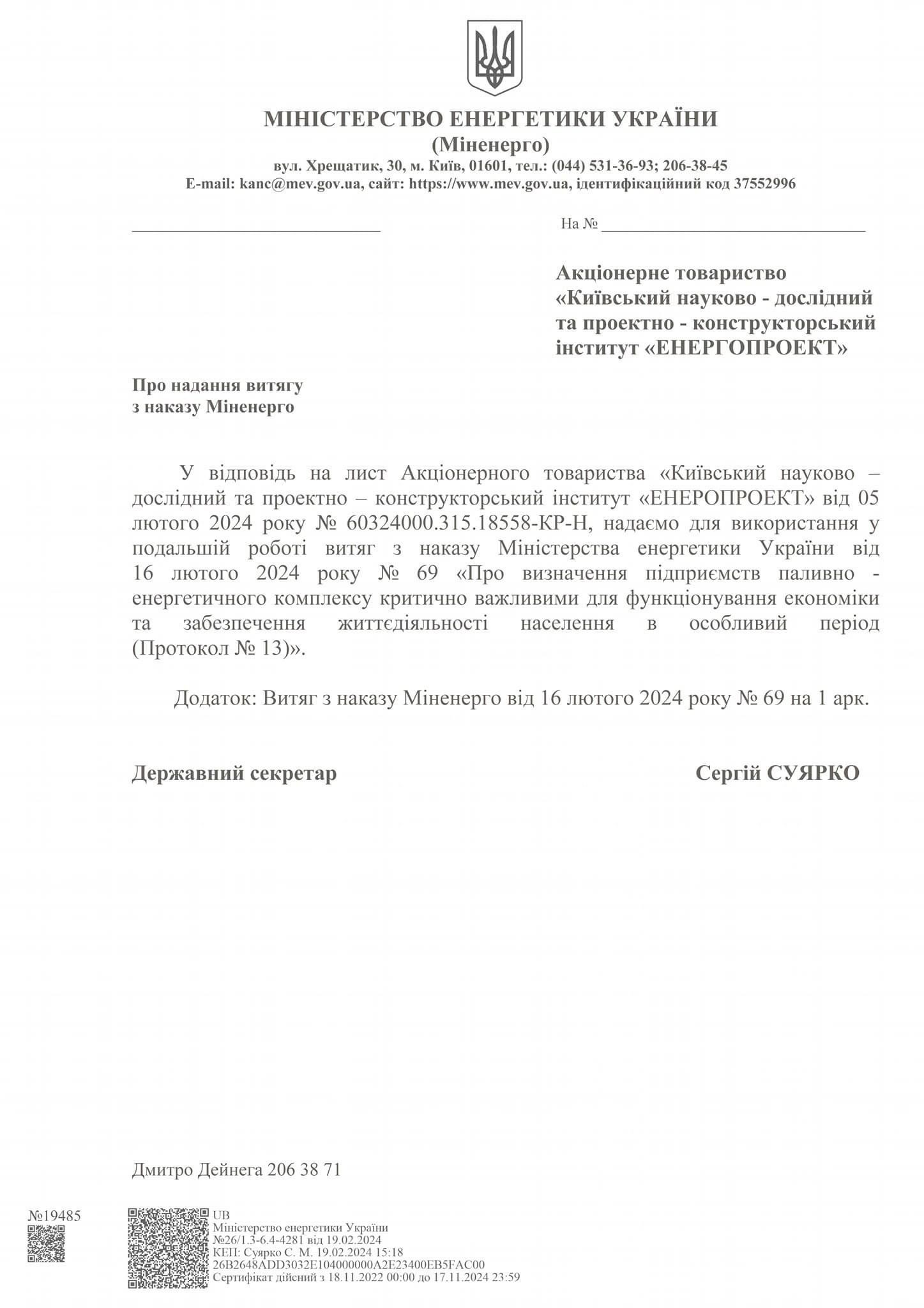 Вже понад рік цей інститут знаходиться в повному управлінні Міненерго. Цей час він практично не працює. Фахівці давно звільнені та розпорошені. Харківський інститут "Енергопроект" давно не бере участі в великих проєктах, лише проводить невеликі коригування документації, яка була розроблена ще до 2022 року.
