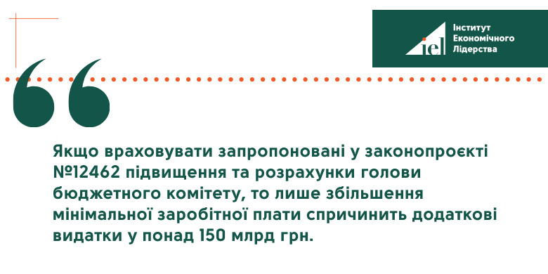Водночас наприкінці лютого 2025 року тема мінімальної заробітної плати та прожиткового мінімуму знову стала актуальною через повідомлення в медіа про реєстрацію у Верховній Раді законопроєкту, що передбачає значне підвищення цих показників у 2025 році. Якщо враховувати запропоновані у законопроєкті підвищення та розрахунки голови бюджетного комітету, то лише збільшення мінімальної заробітної плати спричинить додаткові видатки у понад 150 млрд грн. З огляду на поточний дефіцит бюджету та можливе його збільшення через зростання військових витрат, які стабільно підвищуються протягом останніх трьох років повномасштабного вторгнення РФ, таке рішення викликає значні сумніви щодо його обґрунтованості.