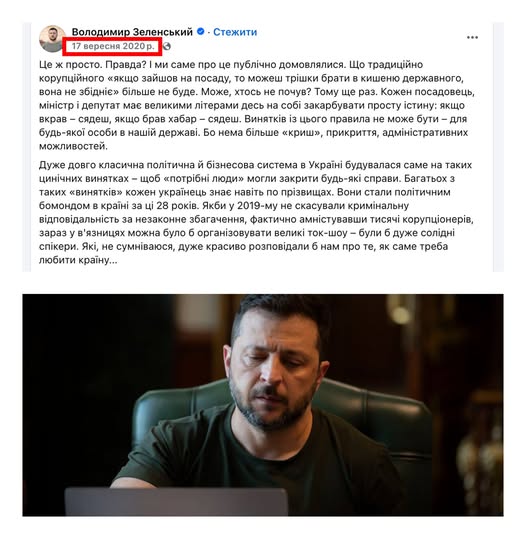 Президент Зеленський 5 років тому: "Якщо вкрав - сядеш, якщо брав хабар - сядеш. Бо нема більше "криш", прикриття, адміністративних можливостей.
