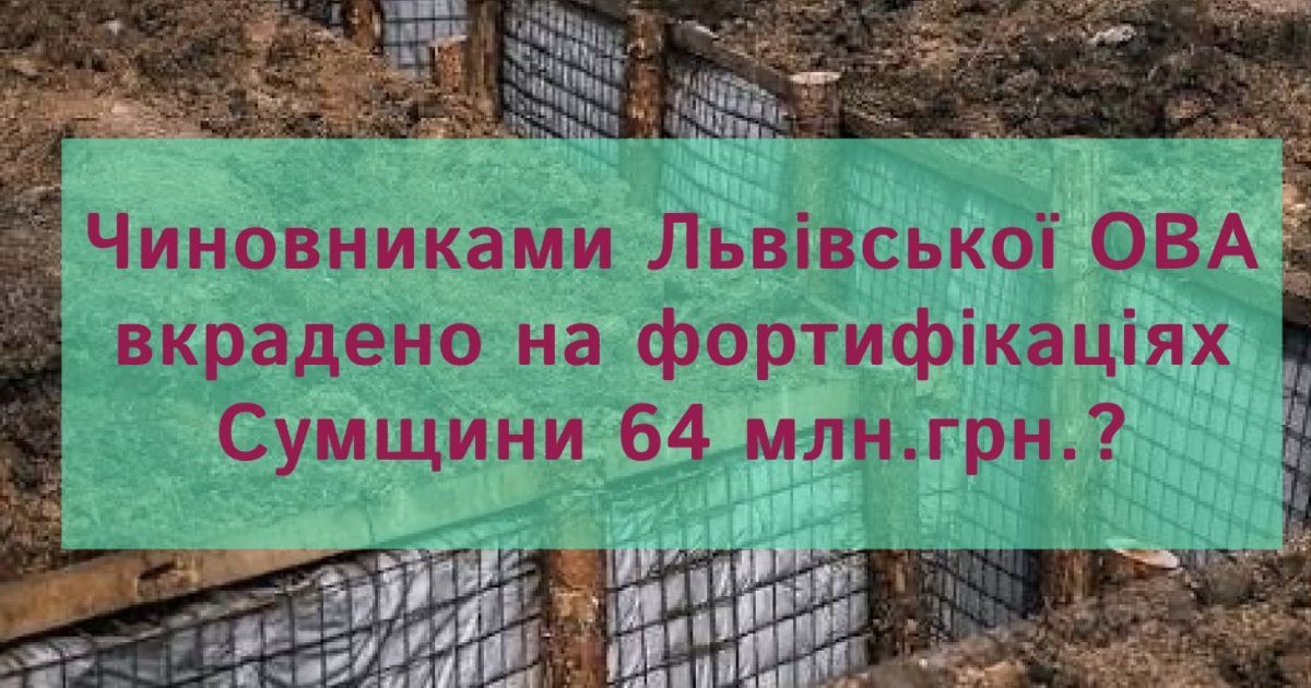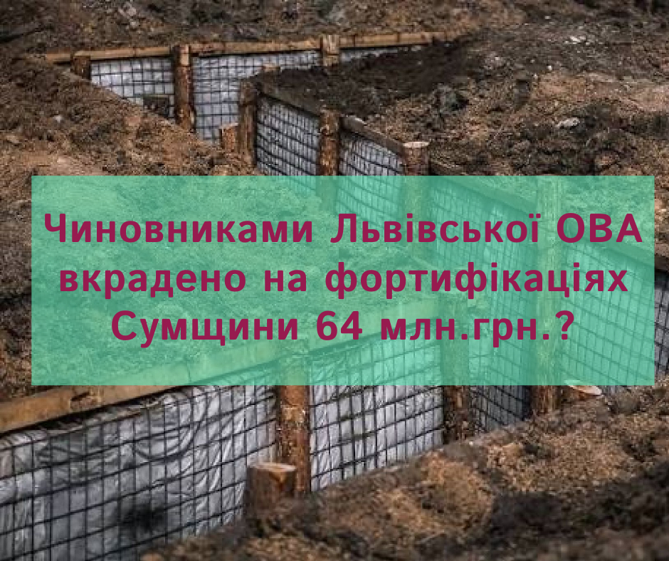 Як Львівська ОВА реалізовувала проєкт будівництва фортифікацій на Сумщині та чи підтверджується факт розкрадання 64 млн грн з державного і обласного бюджетів?