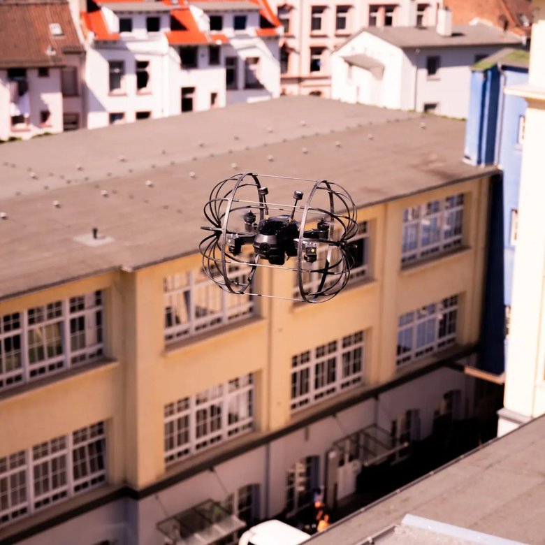 Саме колесо складається з двох куполоподібних боковин зі спицями та кількох перемичок, що формують циліндричну решітку. У зібраному вигляді це — жорстка клітка, всередині якої розміщено корпус дрона. Колесо вільно обертається навколо апарата, забезпечуючи захист від ударів і можливість наземного руху.