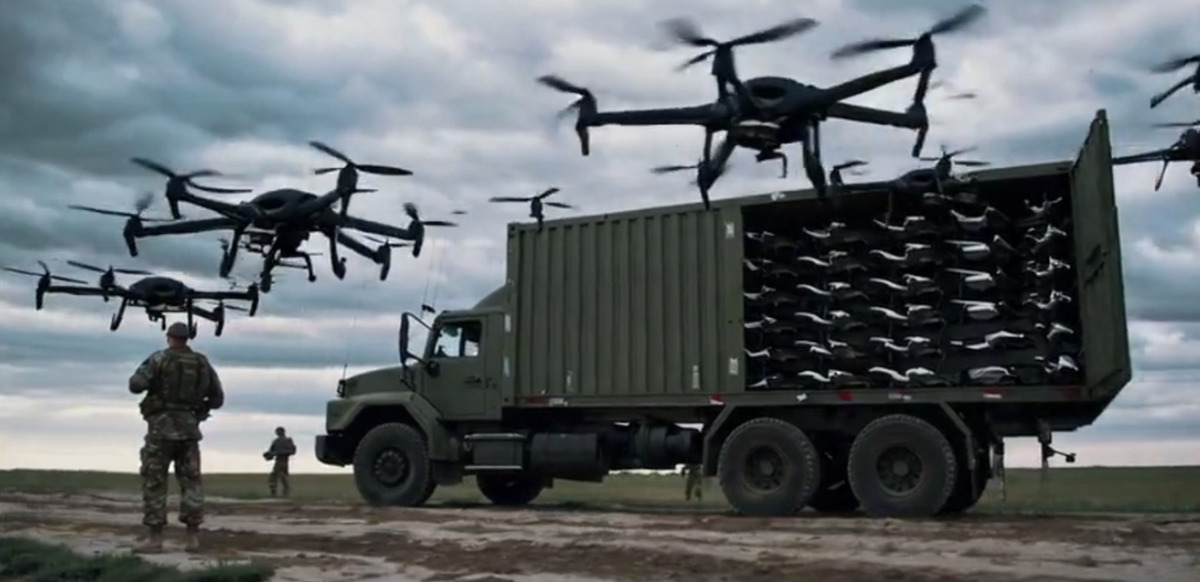 Це коли десятки (а за словами розробників — і сотні) крихітних дронів, що разом утворюють живу барикаду в повітрі.