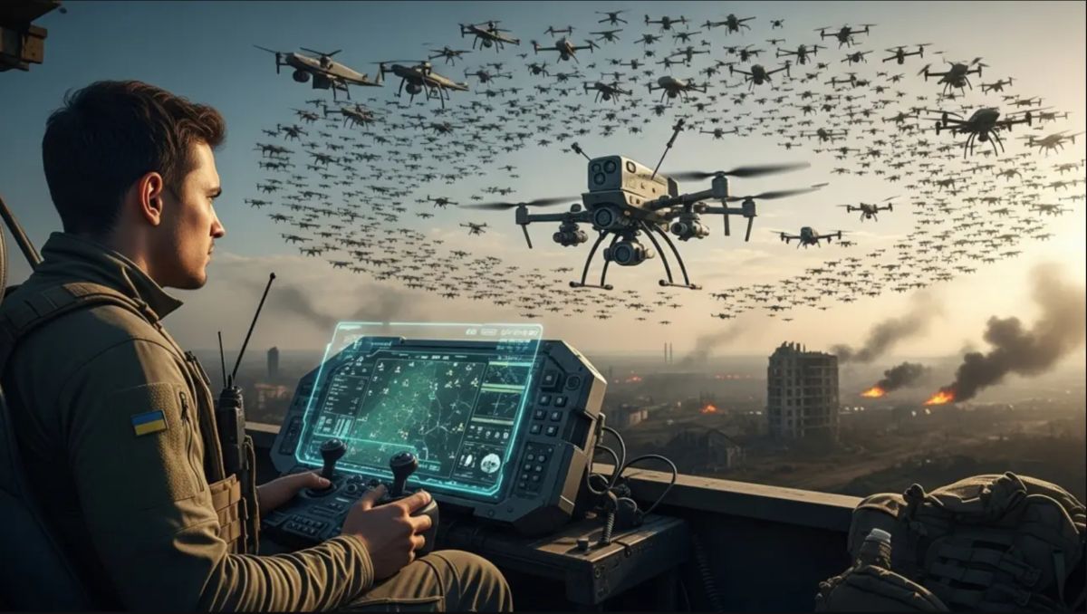 Масове використання дронів: сотні — тисячі безпілотників працюють у координації, реагуючи на загрози в реальному часі.