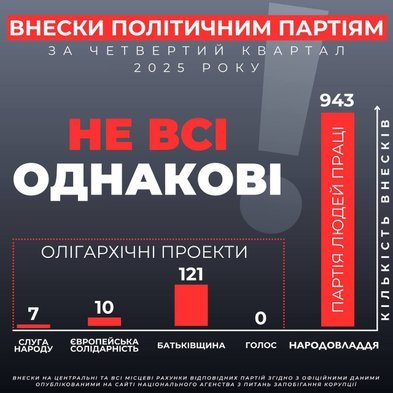 Одна партія в Україні не є олігархічним проектом. Підтверджується аналізом фінансових звітів політичних партій за четвертий квартал 2025 року.