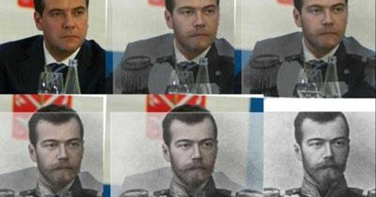 Как передает корреспондент РИА «Новый Регион», сходство обнаружили блоггеры в «Живом Журнале». С помощью компьютерной программы Дмитрию Медведеву была пририсована борода, в результате чего его лицо на фотографии стало сильно похоже на облик последнего российского императора.