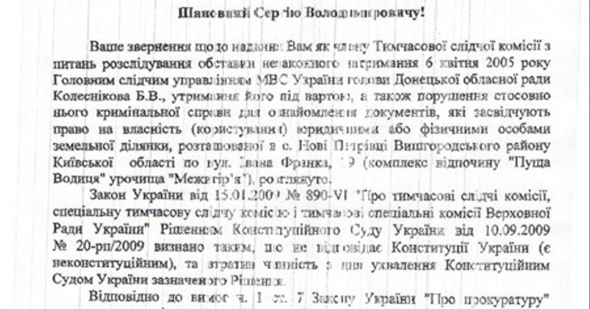 Он просил предоставить для ознакомления документы, подтверждающие право собственности на участок в с. Новые Петровцы (Киевская область) по ул. Ивана Франко, 19, где проживает лидер Партии регионов Виктор Янукович.