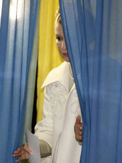 Кандидат на пост президента, действующий премьер-министр Украины Юлия Тимошенко утром, 7 февраля, вместе со своей семьей проголосовала в Днепропетровске на избирательном участке на Октябрьской площади в здании Медакадемии.