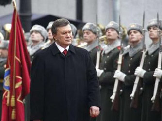 После торжественного поднятия государственного флага Украины и знамени Главы государства Янукович вошел в здание официальной резиденции.