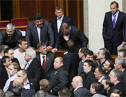 Депутат Валерий Бондык, по заявлению которого было возбуждено уголовное дело по факту событий в Раде, заявил Ъ, что не намерен давать показания следствию. "Я не хочу, чтобы на основе моих показаний кого-то задерживали, поэтому я их не даю. Но заявление я действительно писал, поскольку считаю себя потерпевшим", - сказал изданию господин Бондык. Впрочем, как отмечает Ъ, даже после того, как над нунсовцами нависла угроза ареста и получения тюремного срока (ч. 2 ст. 344 УК предполагает лишение свободы сроком до трех лет), депутат не жалеет о том, что написал заявление: "Как человек, имеющий опыт следственной практики, я могу с уверенностью сказать: реальной меры наказания они не получат, в тюрьме сидеть не будут, и судьбы я им не поломаю. А если они возместят ремонт зала - так это хорошо".