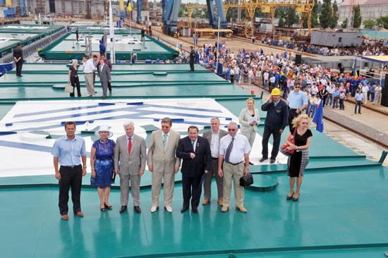 В торжественной церемонии спуска на воду несамоходных суден принял участие председатель Николаевской облгосадминистрации Николай Круглов. Он выразил благодарность генеральному директору СП "НИБУЛОН", Герою Украины Алексею Вадатурскому за то, что он является примером социально ответственного предпринимателя, который получает кредитные ресурсы от ведущих европейских финансовых структур и создает новые рабочие места на Николаевщине. К тому же, как отметил Николай Круглов, именно Алексей Вадатурский начал восстанавливать судоходство на реке Южный Буг, что позволит значительно разгрузить автодороги и улучшит экологию области.