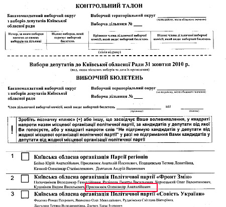 В избирательном бюллетене для голосования на выборах в Киевский областной совет опубликованы первые пятерки политических сил, принимающие участие в выборах 31 октября.