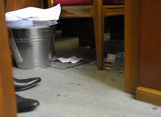 Как передает корреспондент «Обкома», во время перерыва между утренним и вечерним заседаниями парламента – а именно с того момента, как две книжечки с поправками поступили в Раду – народные депутаты от Партии регионов охраняли трибуну и президиум ВР от депутатов оппозиции, дабы те не заблокировали рассмотрение документа.