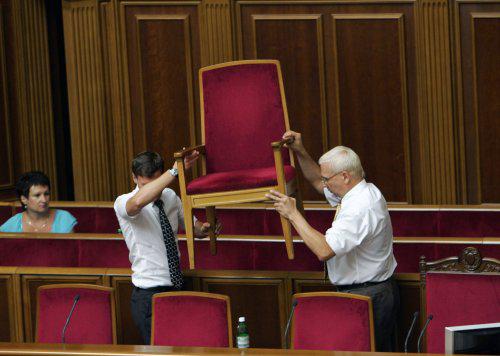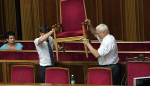 Народные избранники от партии БЮТ заблокировали трибуну и президиум Верховной рады.