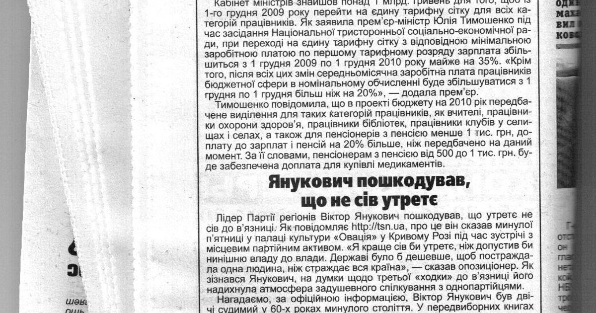 Об этом он сообщил на встрече с местным активом партии в криворожском дворце культуры «Овация», сообщает газета «Вестник Кривбасса». -- Я лучше сел бы в третий раз, чем допустил бы нынешнюю власть к власти. Государству было бы дешевле, чтобы пострадал один человек, чем страдает вся страна, -- сказал Виктор Федорович. По словам Януковича, на такие мысли его натолкнула атмосфера задушевного общения с членами партии, пишет «Вестник». Виктор Янукович, напоминает криворожское издание, «дважды был судим в 60-х и 70-х годах. В 1978 году судимости были погашены. Янукович никогда не отрицал этого факта, и рассказывал об этом журналистам на одной из встреч. В предвыборных изданиях о лидере Партии регионов судимости признавались ошибками молодости. На президентских выборах 2004 года одним из главных компроматов на Януковича было его прошлое, связанное с судимостями».