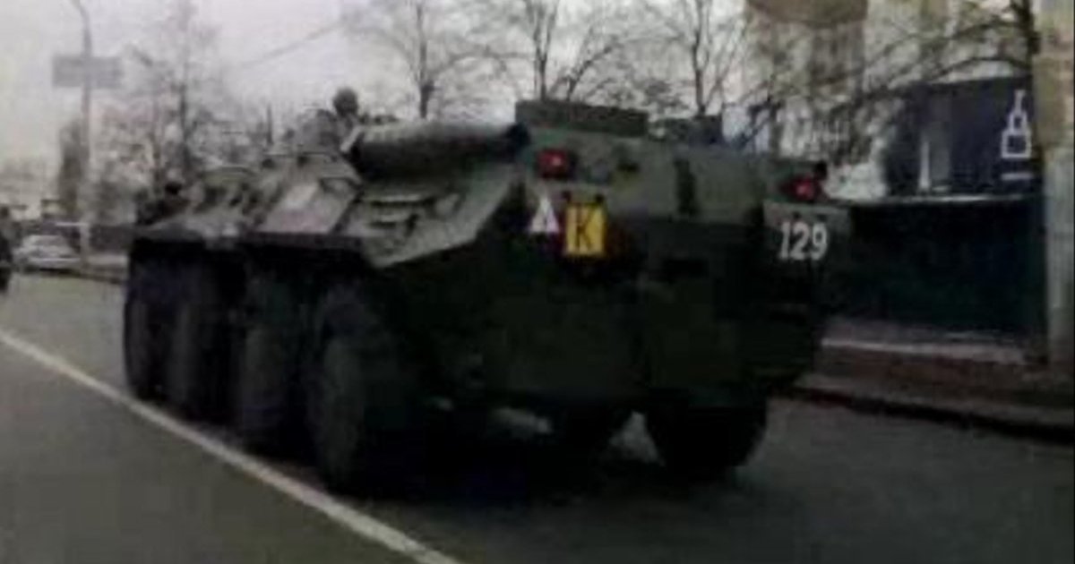 На проспекте Победы в Киеве была замечена колонна бронетранспортеров, которая в сопровождении милиции двигалась в сторону Крещатика.
