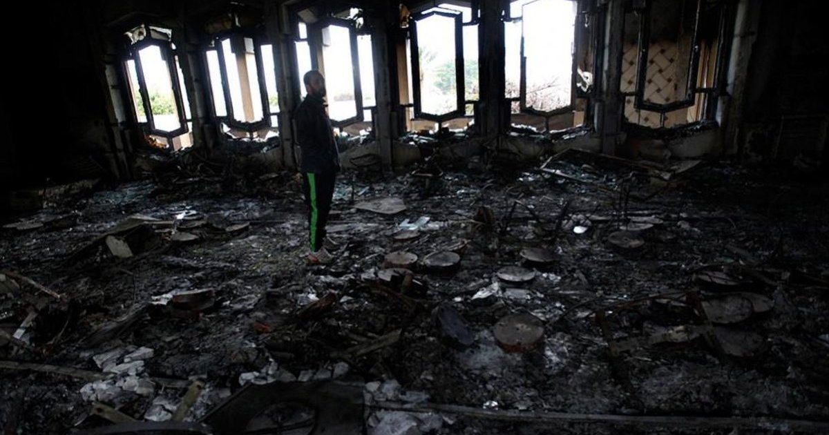 Пораженное здание находилось в 50 метрах от шатра, где Каддафи обычно принимал гостей.