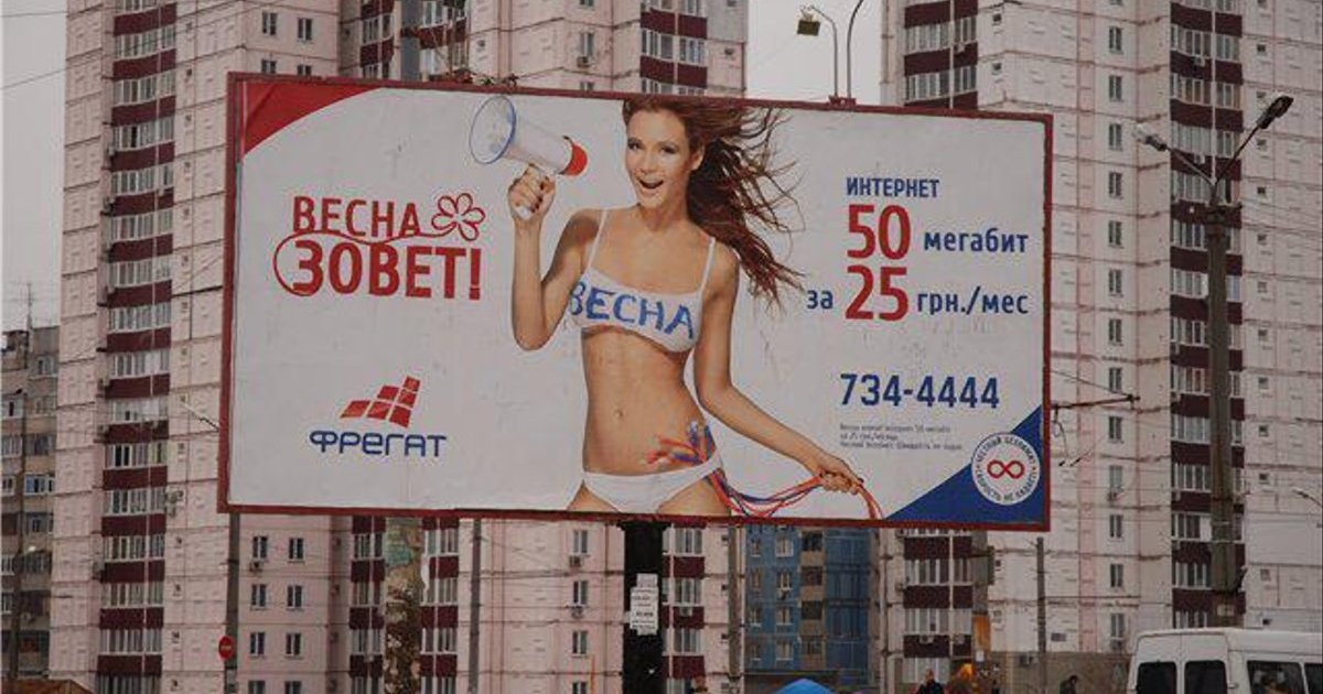 Так, на биг-бордах провайдера «Фрегат» была изображена полураздетая девушка с надписью «весна» на бюстгальтере.