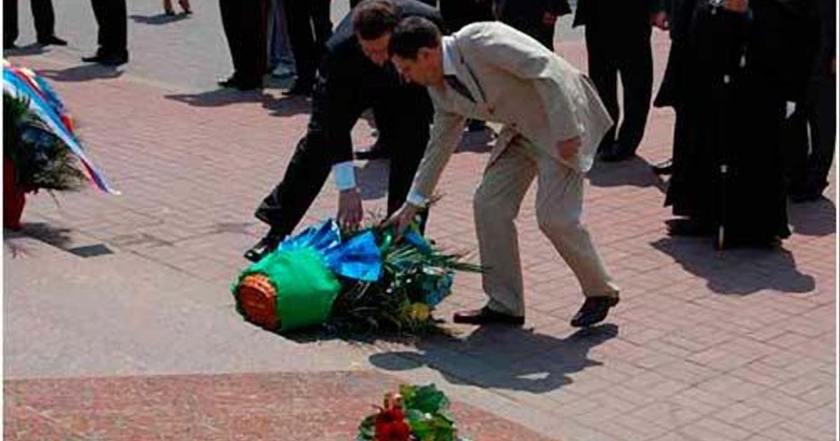 РАНЕЕ ПО ТЕМЕ СМОТРИТЕ ЦЕНЗОР-ВИДЕО - Как венок "напал" на Януковича у памятника неизвестному солдату. Запрещенное ВИДЕО.Церемония не обошлась без курьезов - венок украинской стороны, возле которого стоял министр иностранных дел Украины Константин Грищенко, несколько раз падал. Непослушный венок ловил мэр города Алексей Костусев.