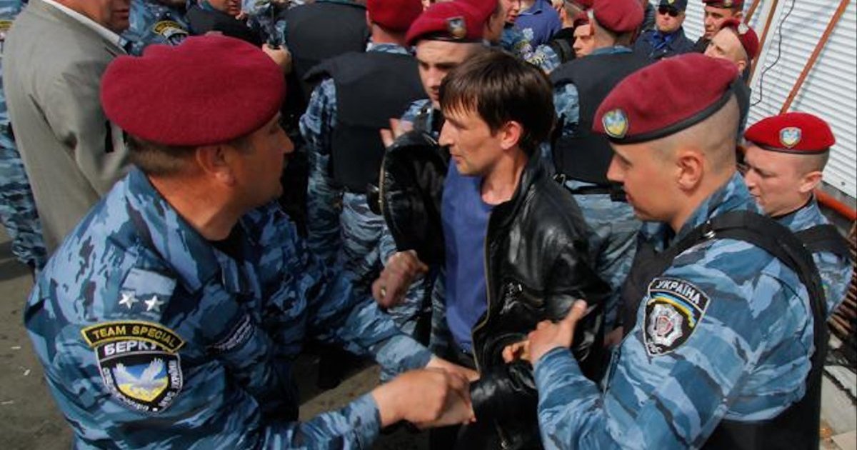 В главке также заявили, что пытавшиеся прорваться начали бросать в сотрудников спецподразделения "Беркут" палки, бутылки, зонтики.
