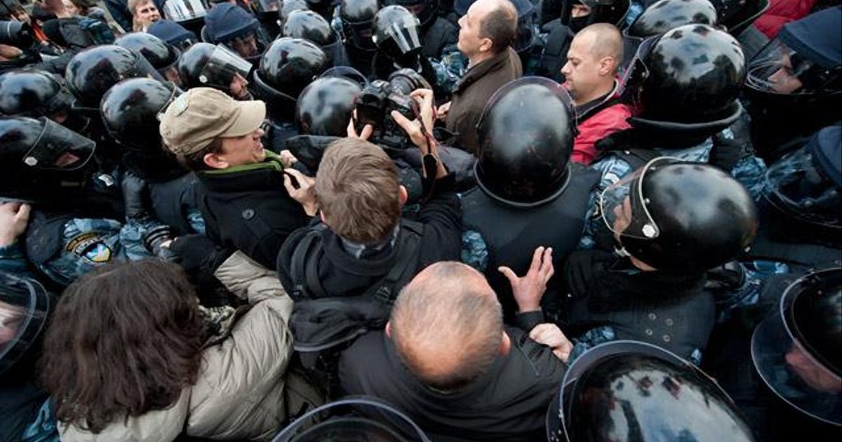 Больше тысячи бойцов "Беркута" оттесняют "чернобыльцев" от Кабмина. Происходят стычки