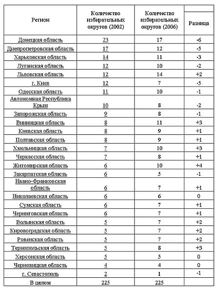 Определение границ избирательных округов, осуществленное в 2006 году, нарушило принцип равенства избирателей в Украине.