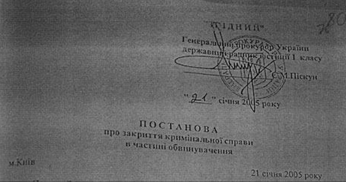 Вынуждены сообщить господину Пшонке, что эта логика ошибочна с самого начала. Поскольку постановление Пискуна, на основе которой Генпрокурор сделал свои умозаключения, в действительности было подписано 21 января 2005 года. То есть еще до того, как Виктор Ющенко официально стал президентом (23 января) и назначил Юлию Тимошенко и.о. премьер-министра (24 января).