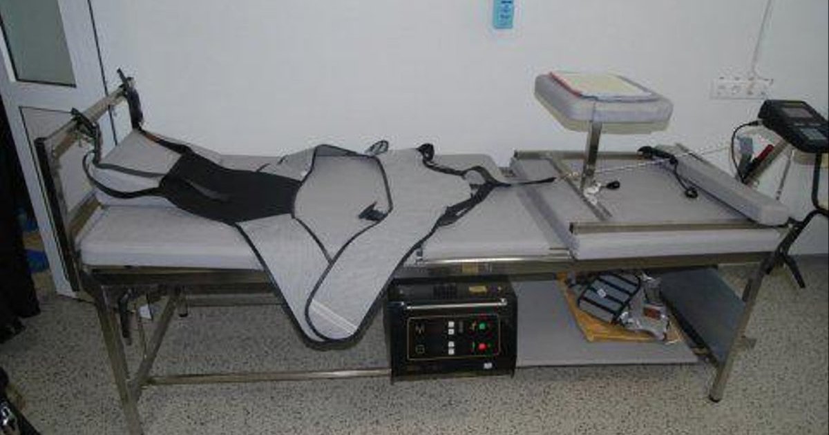Басейну з підігрівом, який зазвичай використовується в реабілітаційних закладах для пацієнтів із захворюваннями міжхребцевих дисків для розвантаження ваги тіла (див. нижче), немає, так само як і не було столу з петлями.