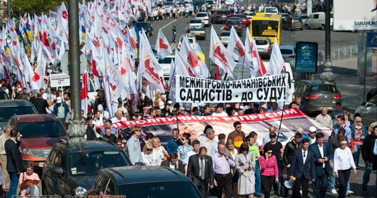 На европейской площади собралось более 5 000 сторонников оппозиции. Люди продолжают прибывать. В данный момент колонна оппозиции движется с европейской площади на Банковую. Участники скандируют "Хама на нары! Юлю на волю!", "Януковича до суду!". Акция проходит под лозунгами «Остановить убийство Юлии Тимошенко !», «Скажи «НЕТ!» зверствам над политическими заключенными!», «Не молчи, когда у лидера оппозиции кулаками хотят воспитать покорность!», «Не стой в стороне, когда конвоиров превращают в палачей!»