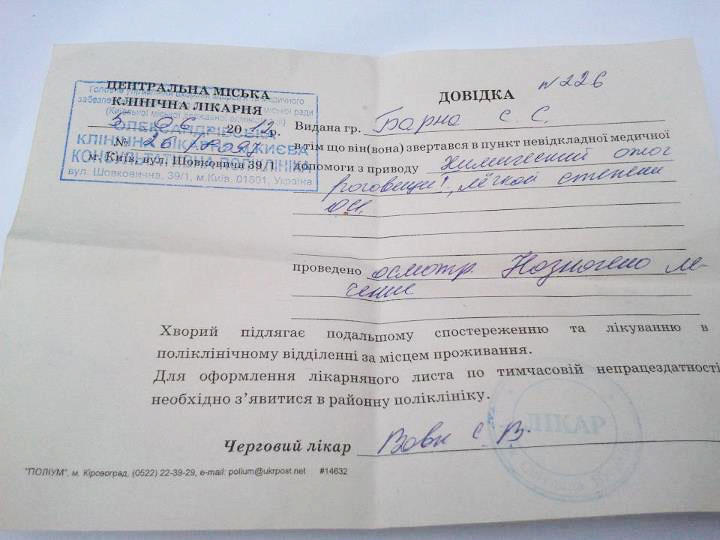 Соответствующую справку из больницы Степан Барна разместил на своей странице в Facebook, сообщает Цензор.НЕТ со ссылкой на «Комментарии». Согласно документу, выданному Киевской центральной городской клинической больницей, политик получил химический ожог роговицы глаз. «Ответ милицейским лжецам! Сегодняшняя цена родного языка или все на что способен режим в Украине (это о применении нашими «беркутятами» химсредств к участникам митинга под ВР Украины)», - подчеркнул депутат. Бойцы спецподразделения «Беркут» применили слезоточивый газ и устроили драку с участниками митинга под Верховной Радой против законопроекта об основах государственной языковой политики.
