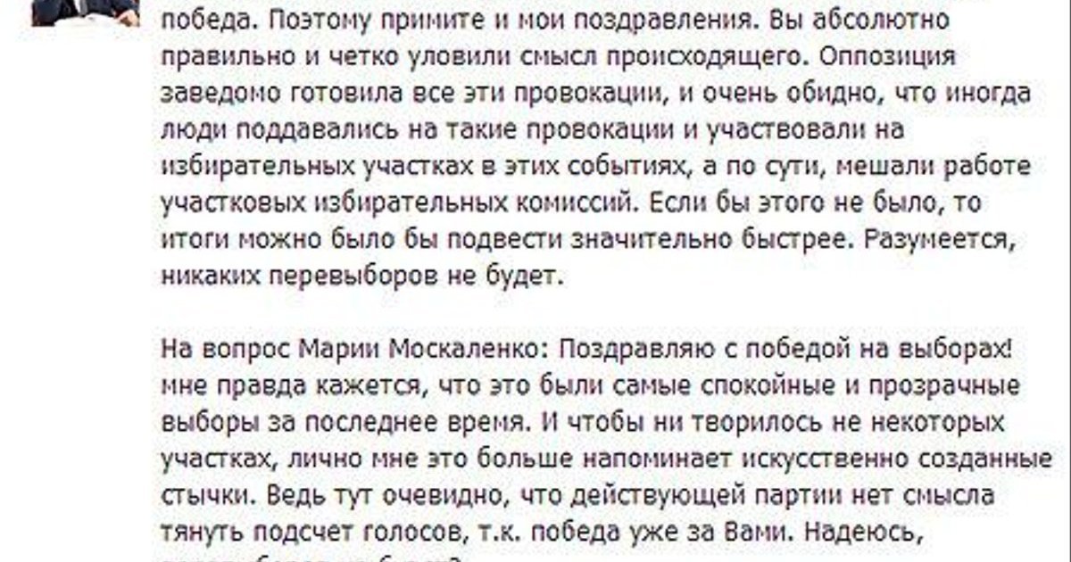 "Очень обидно, что иногда люди поддавались на такие провокации и участвовали на избирательных участках в этих событиях, а по сути, мешали работе участковых избирательных комиссий. Если бы этого не было, то итоги можно было бы подвести значительно быстрее", - отметил он.