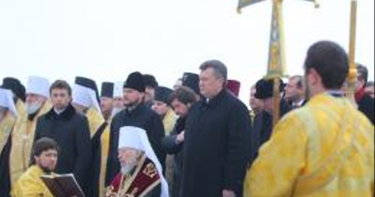 Янукович, Азаров и Попов помолились на Владимирской горке