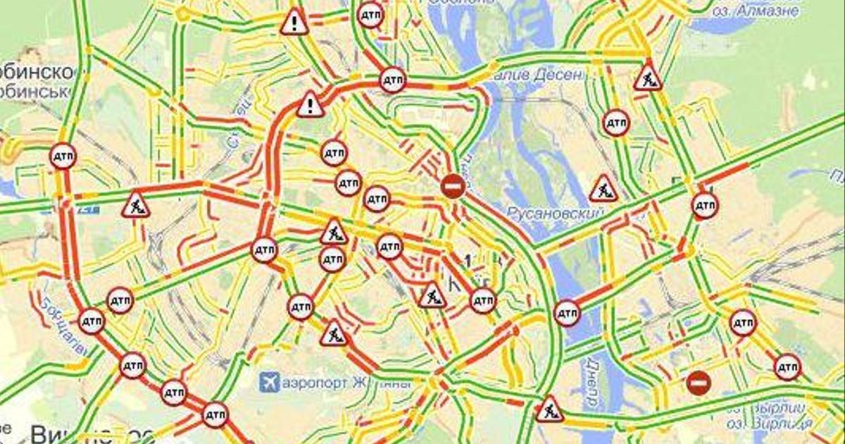 Об этом сообщает Цензор.НЕТ со ссылкой на Яндекс-пробки.