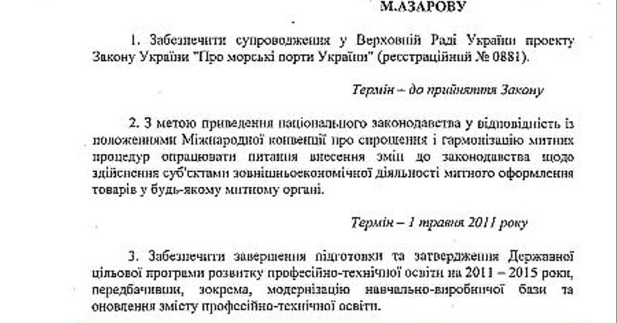 Журналисты приводят документ, удостоверяющий, что "решение о перенаправлении грузопотоков на частную площадку принималось лично Виктором Януковичем".