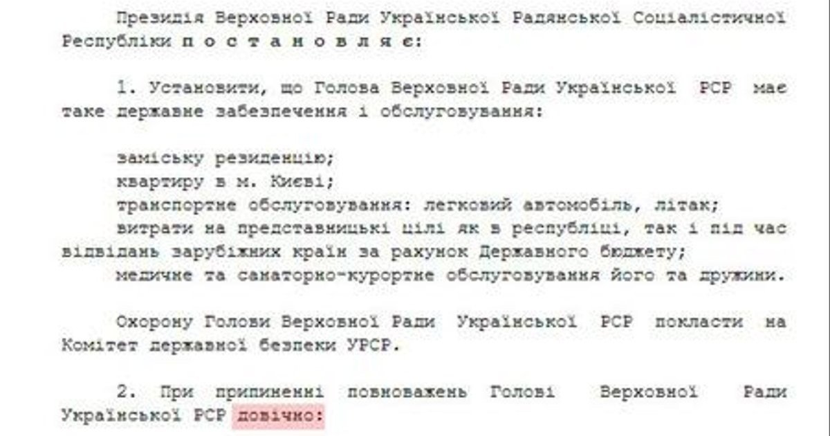 Оказалось, что это постановление президиума Верховного Совета Украинской ССР с гербом несуществующего государства.