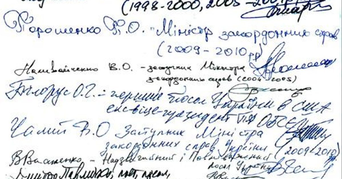 Под документом поставили свои подписи: Борис Тарасюк (министр иностранных дел, 1998-2000, 2005-2007 гг) Петр Порошенко (министр иностранных дел, 2009-2010) Валентин Наливайченко (заместитель министра иностранных дел, 2004-2005), Олег Билорус (первый посол Украины в США, экс-вице-президент ПА ОБСЕ), Александр Чалый (заместитель министра иностранных дел, 2009-2010) Владимир Василенко (Чрезвычайный и Полномочный Посол Украины), Дмитро Павлычко (поэт, посол, Герой Украины).