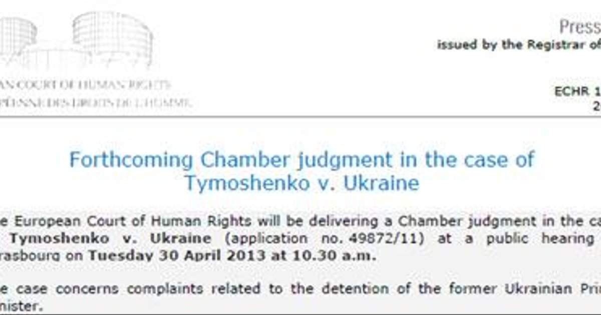 Евросуд огласит вердикт по делу Тимошенко 30 апреля. ДОКУМЕНТ