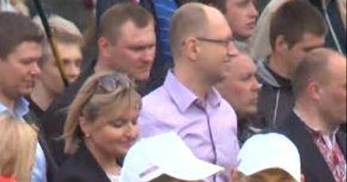 Арсений Яценюк напомнил о проблемах с анонсированием акции в Донецке: «Нас не пустили с анонсами акции на телевидение, и, кстати, отказали в эфирах лидерам оппозиции в ведущих донецких телеканалах. Ну ничего, в таких условиях живем».