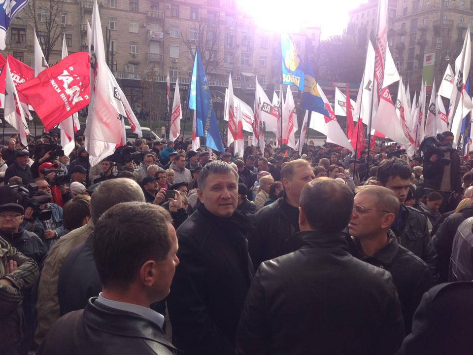 По словам депутатов, им прыснули газ прямо в лицо. Также кто-то бросил в толпу несколько дымовых шашек. Поэтому часть митингующих вынуждена была отойти на проезжую часть, перекрыв часть Крещатика. Председатель Киевской организации партии «Батькивщина», народный депутат Юрий Одарченко требует от милиции пропустить граждан внутрь здания Киевсовета. По его словам, там должно состояться общее собрание членов территориальной общины Киева. Собрание проводится с целью выражения позиции о нарушении конституционного права киевлян участвовать в местном самоуправлении, формировать и влиять на органы власти.