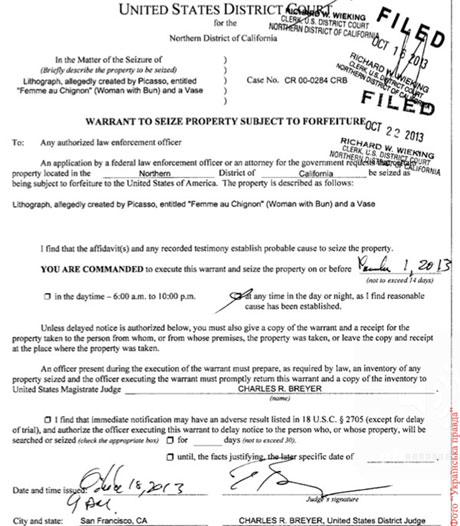 "И вот теперь 18 октября 2013 судья Брейер постановил - забрать у Лазаренко литографию Пикассо "Дама с шиньоном" ориентировочной стоимостью 30 тысяч долларов, а также вазу, оцененную в 7800 долларов", - отметил журналист.