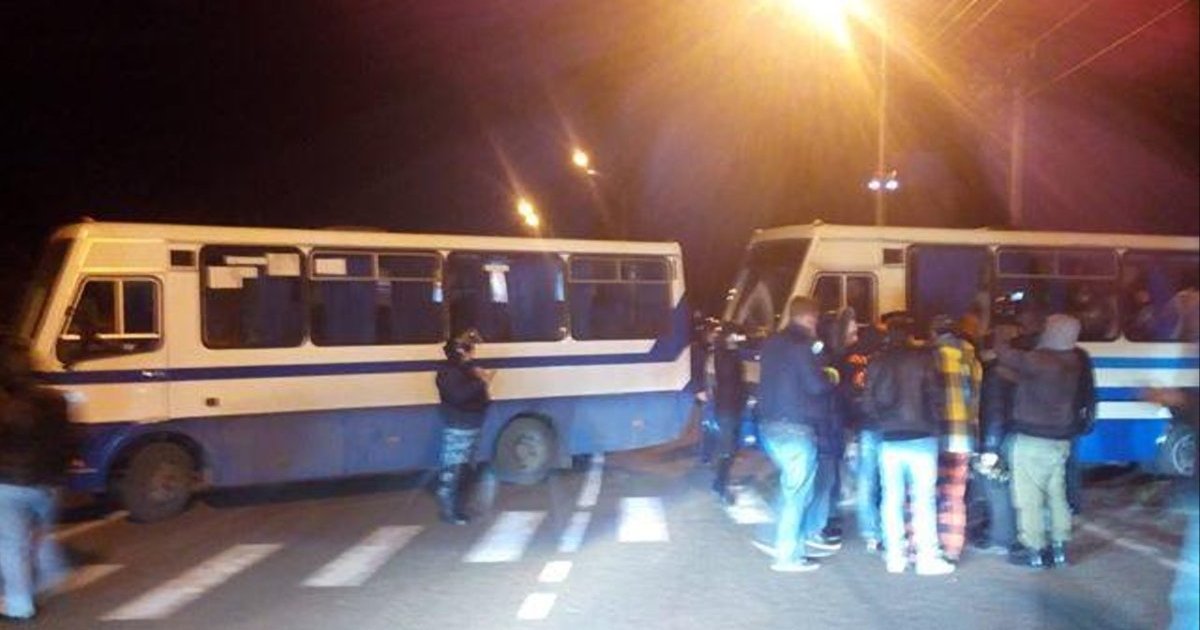 Встречные водители говорят участникам шествия, что поворот на Межигорье заблоирован строительной техникой, а также там замечены работники МВД.