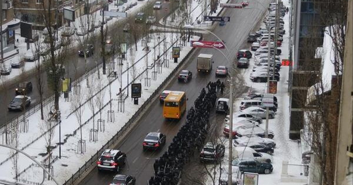Очевидцы сообщают о том, что в центр Киева подтягиваются колонны силовиков