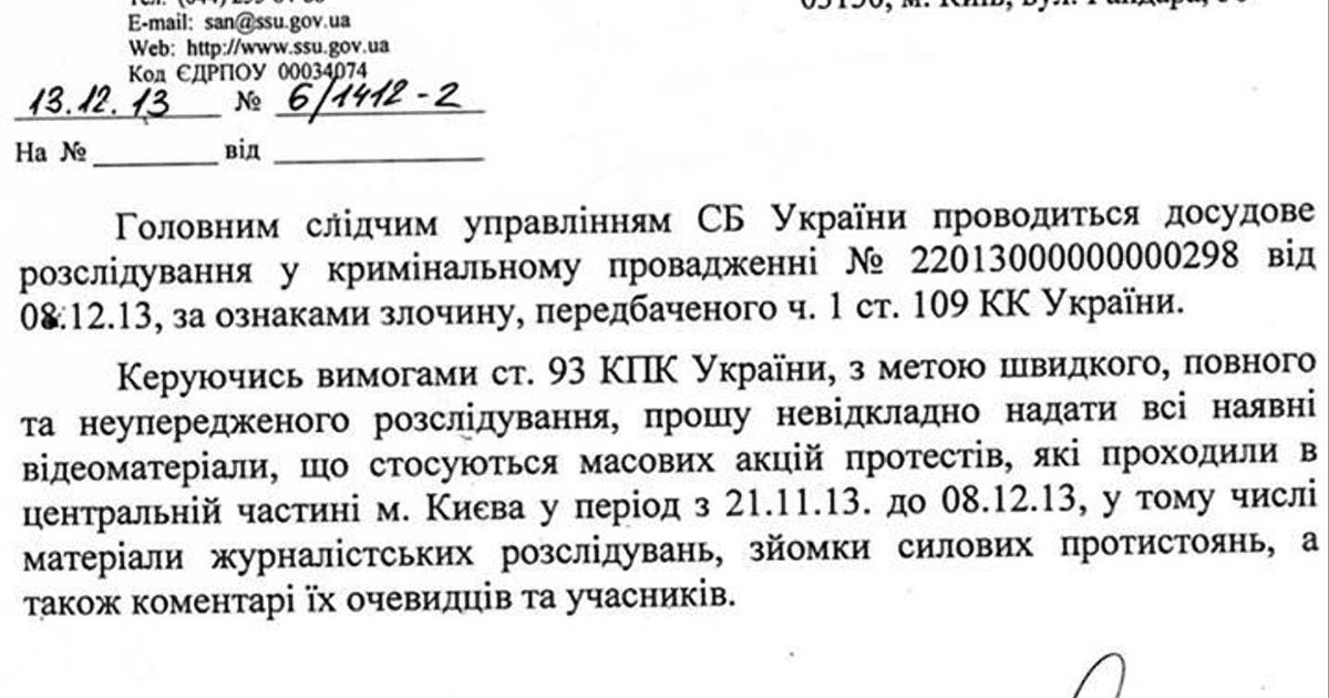 СБУ требует от ТBi все видеоматериалы о протестах. ДОКУМЕНТ