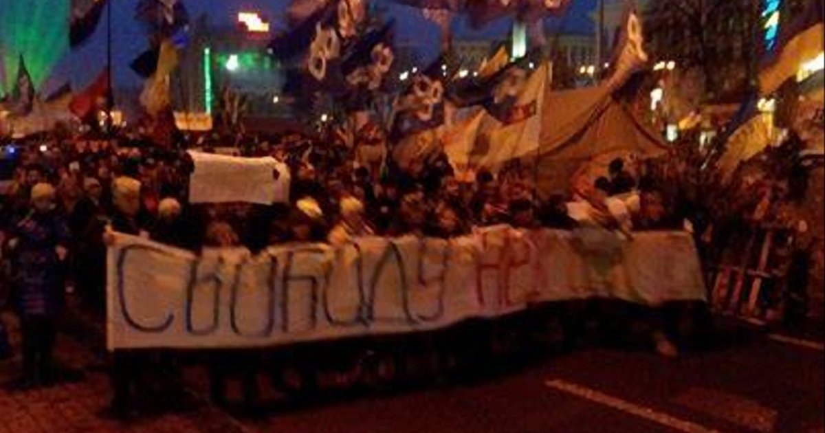 Активисты требуют освобождения Я.Притуленко. При этом они скандируют лозунги: "Ярослав, Майдан с тобой" и "Права человека превыше всего". В ближайшее время должно начаться рассмотрение дела Ярослава Притуленко в Печерском суде.