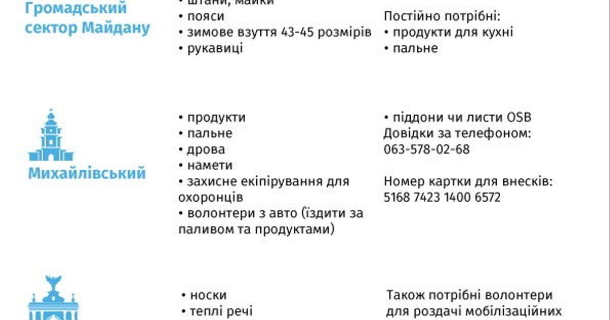 Перечень актуальных на 19 января нужд Евромайдана публикуем в виде фото.