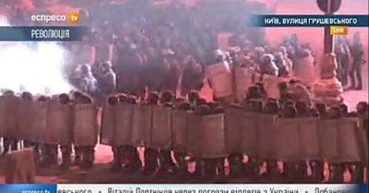 Преобладающие силы "Беркута" и внутренних войск зачистили улицу Грушевского и разобрали баррикаду митингующих. При этом активисты начали отступать в сторону Евромайдана.