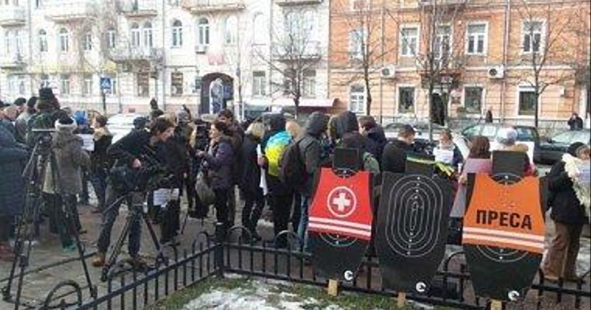 Как передает корреспондент ЛІГАБізнесІнформ, перед посольством поставили три мишени - в форме человеческого тела в красной жилетке с крестом и в оранжевой жилетке с надписью "Пресса" и с желто-голубой лентой - в которых есть отверстия как от пуль, передает Цензор.НЕТ.