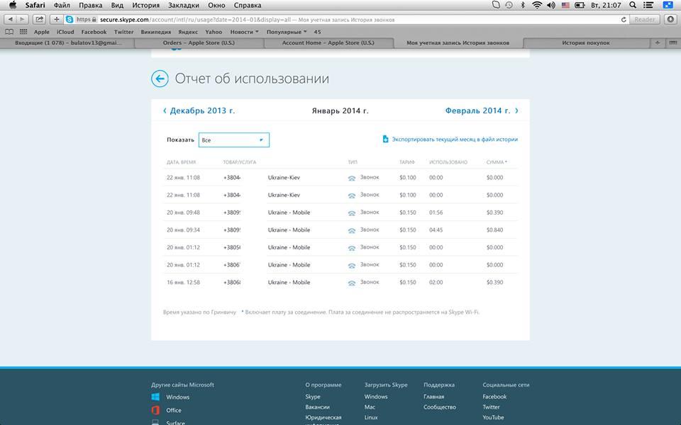«В Айтюнсстор (iTunes store) зафиксирована покупка кредитов на скайп (skype) в размере пресловутых 39 долларов США, которая была совершена - внимание - 22 января 2014 г. Покупка кредитов в Скайпе через iPad (который кстати сейчас у тех же самых ментов) списывается через iTunes», - отметил Булатов.